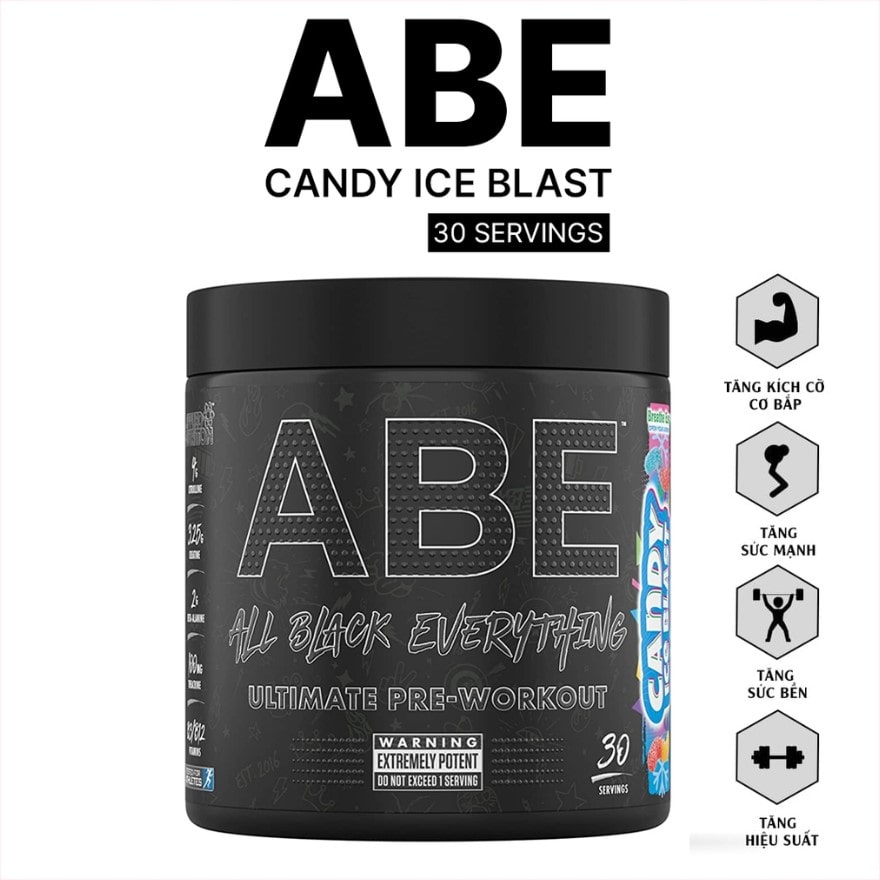 Beta-Alanine (3.2g), Citrulline Malate (2g), Creatine Monohydrate (3g), Taurine (200mg), L-Tyrosine (200mg), Caffeine (200mg), Vitamin B3 (Niacin), Vitamin B6, Vitamin B12, TheaCrine (100mg), Chất điều chỉnh độ acid (Acid citric (330), Malic acid (296)), Chất tạo ngọt tổng hợp (Sucralose (955), Acesulfame K (950)), Chất chống vón (Silicon dioxide (551)), Hương liệu tổng hợp (Hương Candy Ice Blast), Màu thực phẩm (E133, E129).