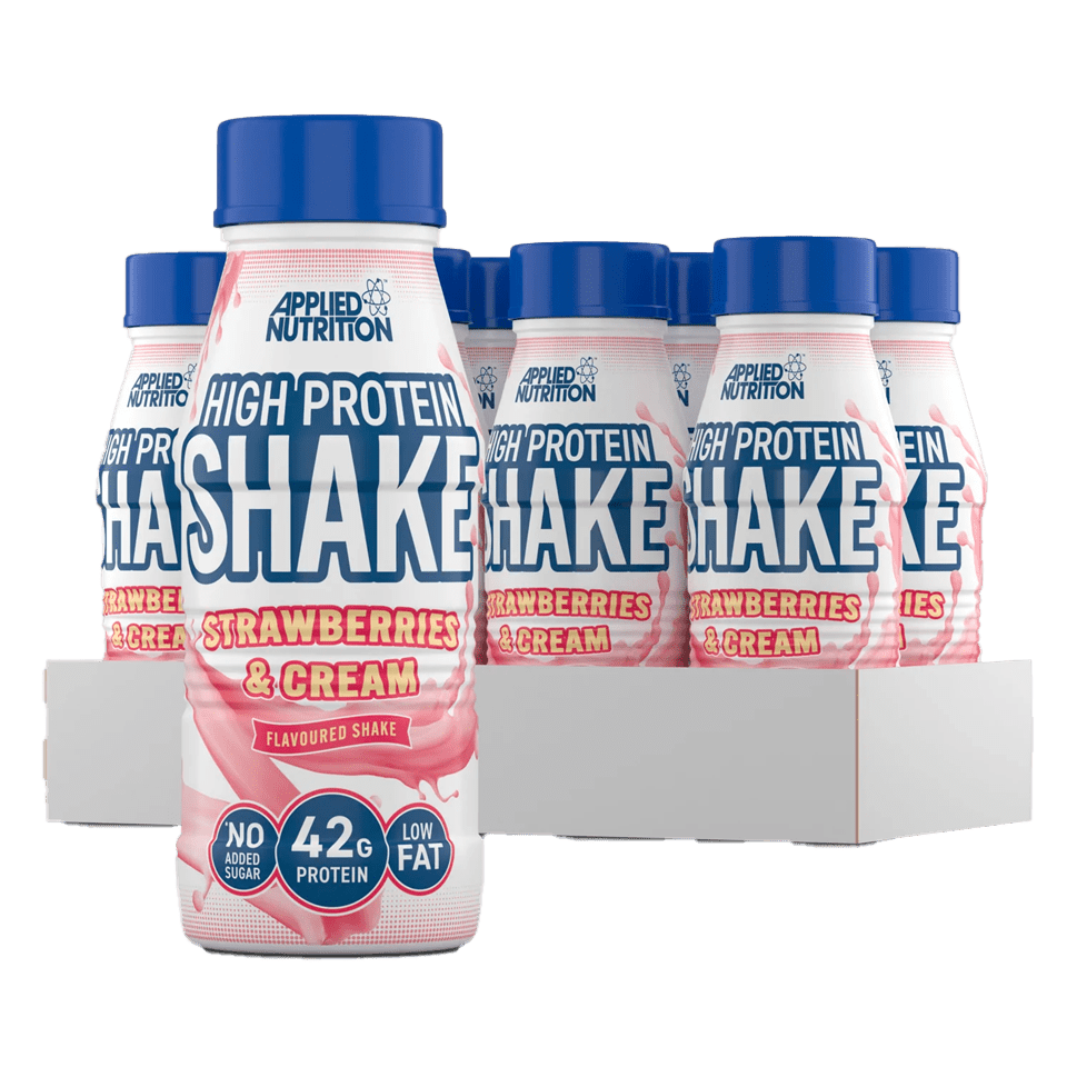 Sữa tách béo, Whey Protein Isolate, Whey Protein Concentrate, Đường, Chất làm đặc (Cellulose gum, Xanthan gum), Chất ổn định, Hương liệu tổng hợp Strawberries & Cream, Vitamin và khoáng chất, Chất bảo quản an toàn.